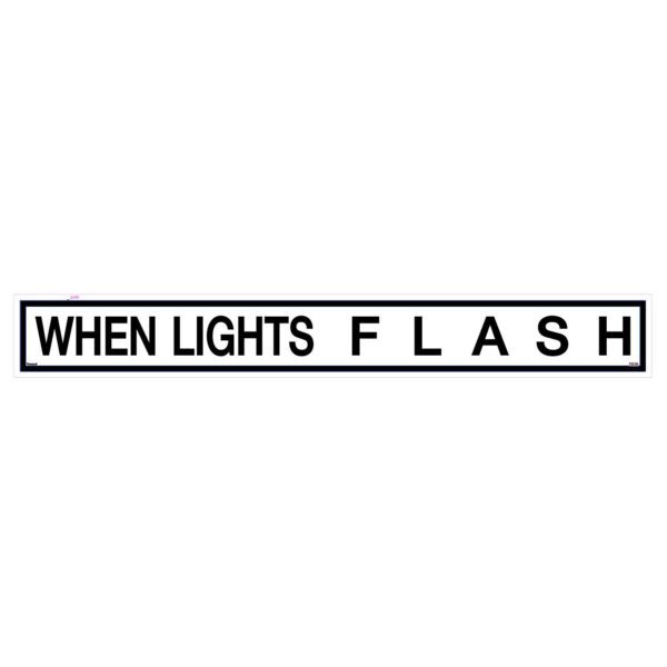 - TS-150 Clause 6.1 Compliance: Displays the ‘WHEN LIGHTS FLASH’ message, following the exact dimensions required for visibility.